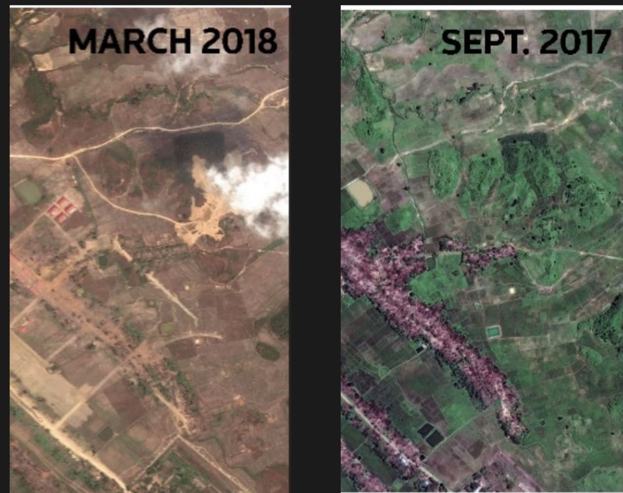 وجاء في التقرير :” المناطق التي كان يعيش فيها الروهنغيا في ولاية أراكان الغربية في ميانمار قبل أن يطيح بها الجيش تتحول بشكل كبير حيث كانت المناطق الشمالية لهذه المنطقة ذات يوم ذات أغلبية مسلمة في الدولة البوذية ويجري الآن بناء مئات المنازل الجديدة في القرى التي أقام فيها الروهنغيا، مثلما تظهر ذلك صور الأقمار الصناعية. وقد أحرقت العديد من هذه القرى ، ثم سويت بالأرض وكشطتها الجرافات. ويتم احتلال المنازل الجديدة بشكل رئيسي من قبل البوذيين ، وبعضها من أجزاء أخرى من أراكان. كما تقوم قوات الأمن ببناء منشآت جديدة في هذه المناطق”.