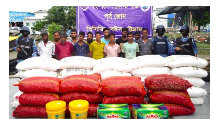 تمكن خفر السواحل البنغلادشي، من ضبط 13 شخصاً أثناء محاولتهم تهريب 430 كيساً من سماد اليوريا و600 كيس من البطاطس إلى ولاية أراكان غربي ميانمار، في عملية نوعية تمت مساء الأربعاء، بمنطقة “باتينغا أوتر أنكوراج” بمدينة “شيتاغونغ”.