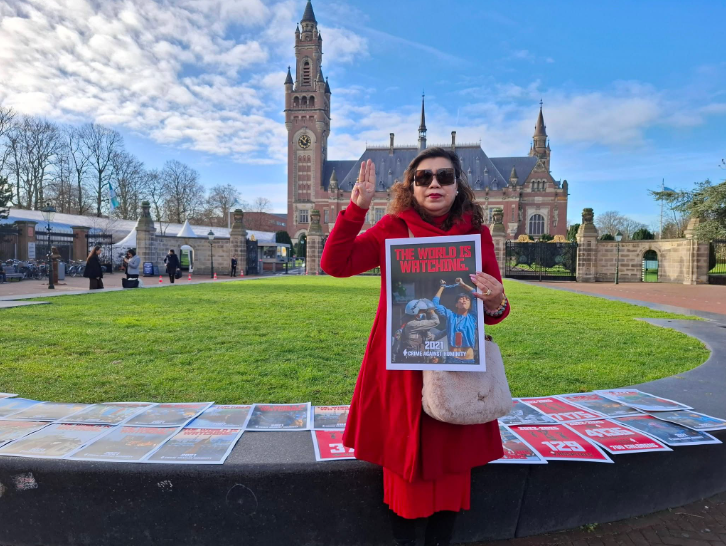 نظم عدد من مواطني ميانمار، احتجاجاً أمام محكمة العدل الدولية في لاهاي، بالتزامن مع مثول وفد يمثل جيش ميانمار داخل المحكمة لعرض مرافعاته في قضية تتعلق باتهامات بانتهاك اتفاقية منع الإبادة الجماعية.