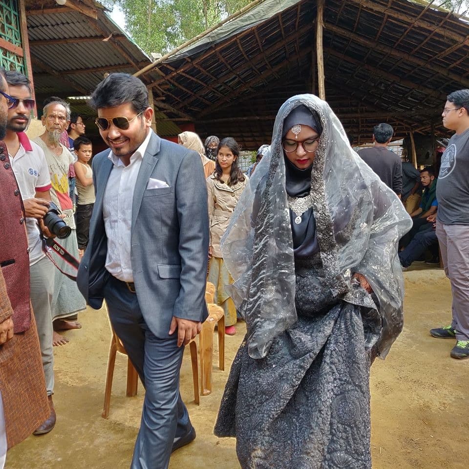 عقد زوجان بنغاليان مراسم عرسهما في مخيمات اللاجئين الروهنغيا في كوكس بازار دعما للاجئين ودعما للعمل الإنساني.