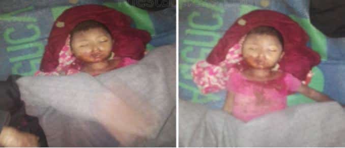 دهست سيارة إسعاف طفلة روهنغية تبلغ من العمر أربع سنوات في مخيم اللاجئين الروهنغيا في كوكس بازار ببنغلادش .