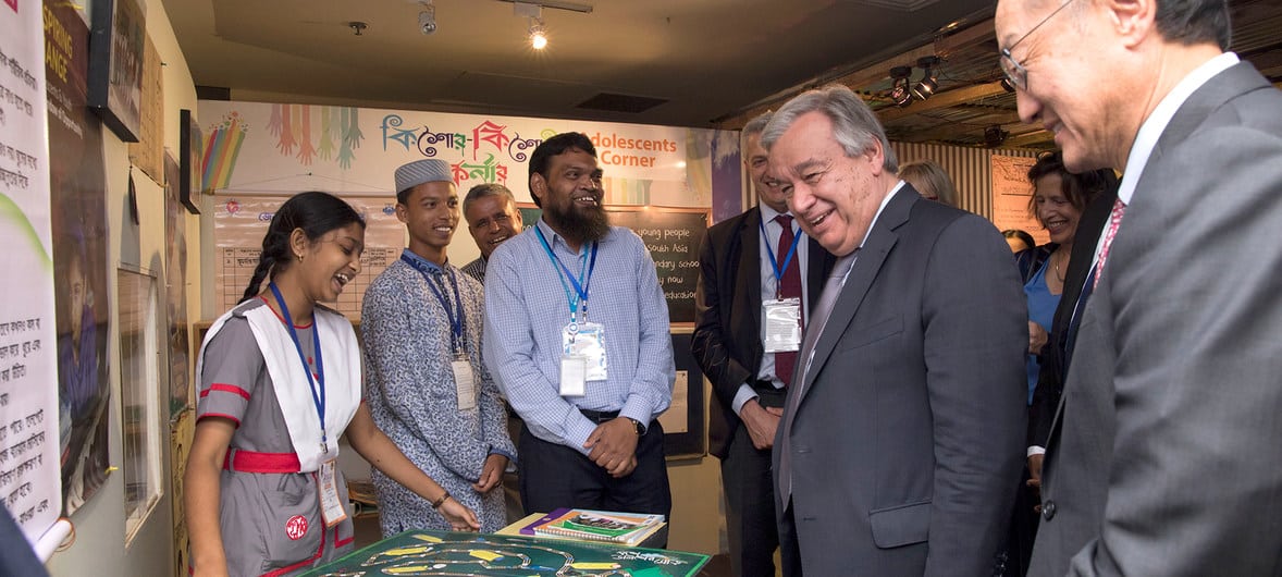 وخلال اجتماعه ورئيس البنك الدولي جيم يونغ كيم مع رئيسة وزراء بنغلادش الشيخة حسينة، قال غوتيريش إن الاستجابة لأزمة الروهنغيا ليست مسؤولية بنغلادش وإنما هي مسؤولية دولية.