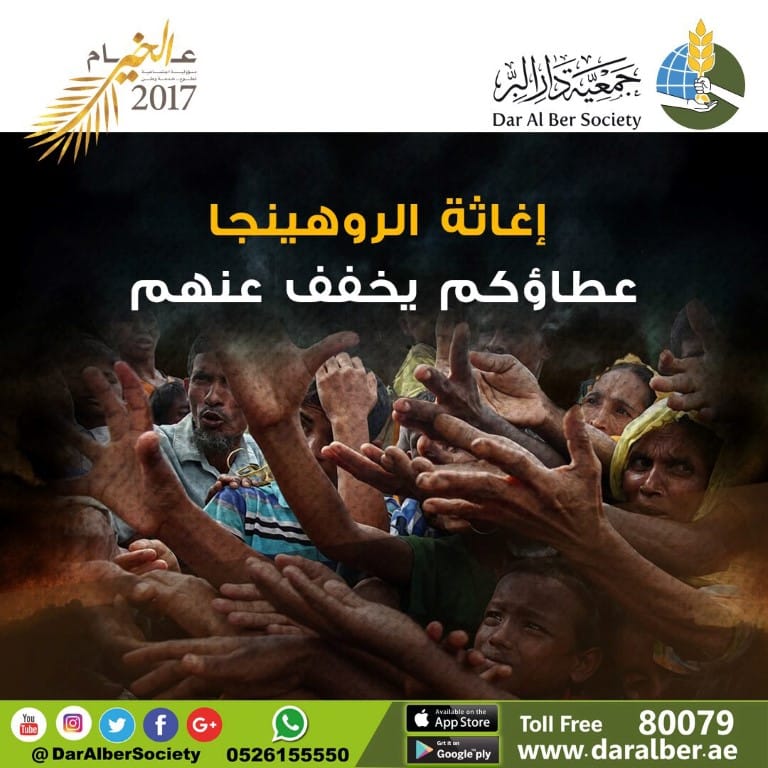 أطلقت جمعية ” دار البر ” حملة إنسانية جديدة بالشراكة مع مبادرة ” زايد العطاء ” ومؤسسة بيت الشارقة الخيرية تحت شعار ” عطاؤكم يخفف عنهم ” تستهدف علاج اللاجئين من ” الروهنغيا ” في بنغلادش من خلال تقديم الدواء مع الرعاية الصحية في مستشفى ميداني متكامل.