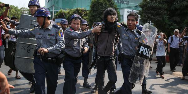 ومن بين الحالات التي وثقتها منظمة العفو حالة عشرات الطلاب المتظاهرين الذين اعتقلوا لممارستهم الاحتجاج ضد قانون التربية الوطنية، وحالة الناشط في مجال حقوق الإنسان ناو أوهن هلا، الذي أدين بتهمة التجمع غير القانوني مع المتظاهرين ضد مشروع تعدين النحاس خارج السفارة الصينية في رانغون.