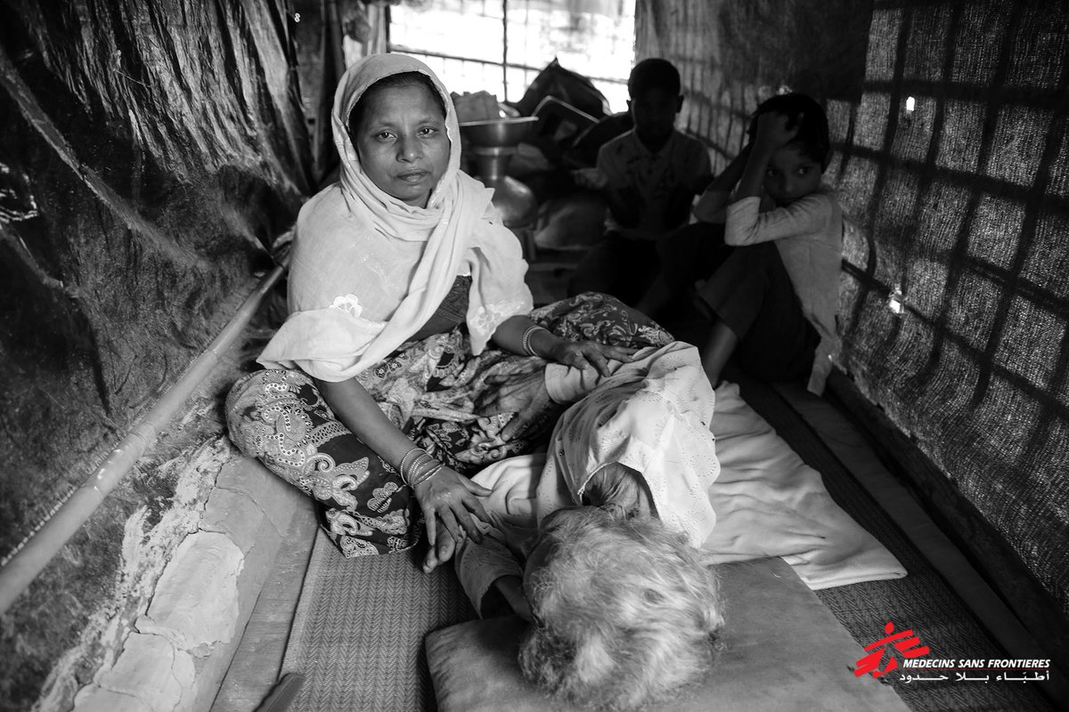 حمل سوليم والدته على ظهره مدة ثمانية أيام. فهذه السيدة التي ناهز عمرها المئة عام أضعف من أن تسير وحدها. تدعى ديلافوروز، وقد كانت في صحة جيدة بالنسبة لعمرها قبل أن تضطر هي وابنها وكنتها وأحفادها الستة لخوض رحلة قاسية ومضنية من ميانمار إلى مخيمٍ للاجئين في بنغلادش .
