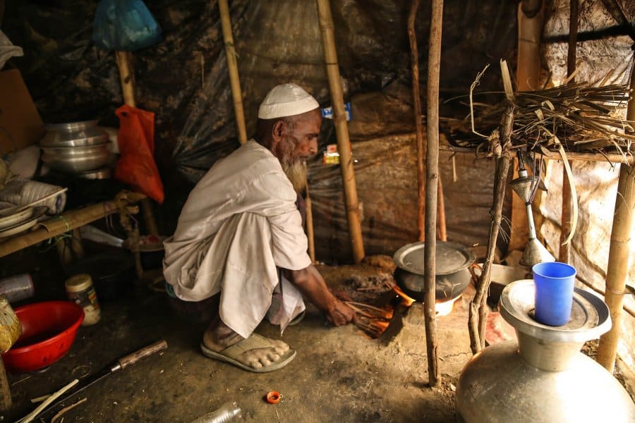 وتم منع الروهنغيا من العمل ومنعتهم أكثر من عشرين من نقاط التفتيش العسكرية من مغادرة المعسكر، الذي أصبح أكبر مخيم للاجئين في العالم. ويعتمدون على الجمعيات الخيرية بشكل أساسي من أجل الحصول على الغذاء والدواء والملابس ومواد الإسكان، حيث أشار هاشم إلى أنه يجب أن يمشي أكثر من ساعة في جو حارق للوصول إلى أقرب سوق. وأضاف أن العديد من الشباب الروهنغيا كانوا قلقين أيضا بشأن عدم تناول الطعام والمياه وسط ارتفاع درجات الحرارة في المخيم، مشيرًا إلى أنه وأصدقائه كانوا يشعرون بالسعادة في الماضي بحلول رمضان، حيث كانوا قادرين على الراحة في الظل بين الأشجار أثناء الصيام.