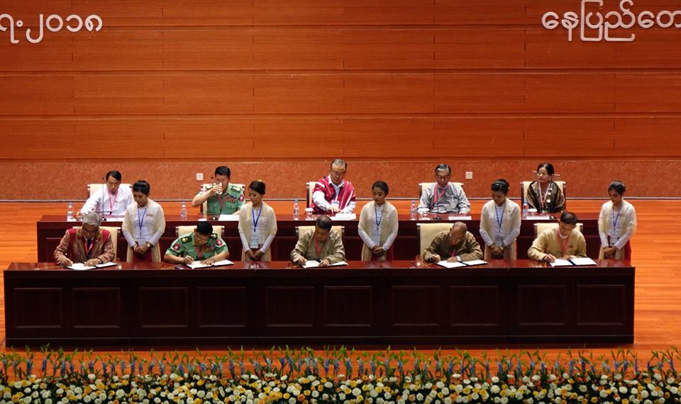 ومن أجل الإيفاء بتعهدها الانتخابي بإنهاء الحرب الأهلية التي استمرت 70 عاما في ميانمار، استضافت سو تشي مباحثات استمرت خمسة أيام، حضرها ممثلو الجيش وممثلو الجماعات المسلحة العرقية في ميانمار، التي وقعت بعضها فقط على اتفاق وقف إطلاق النار الذي تبنته الحكومة.