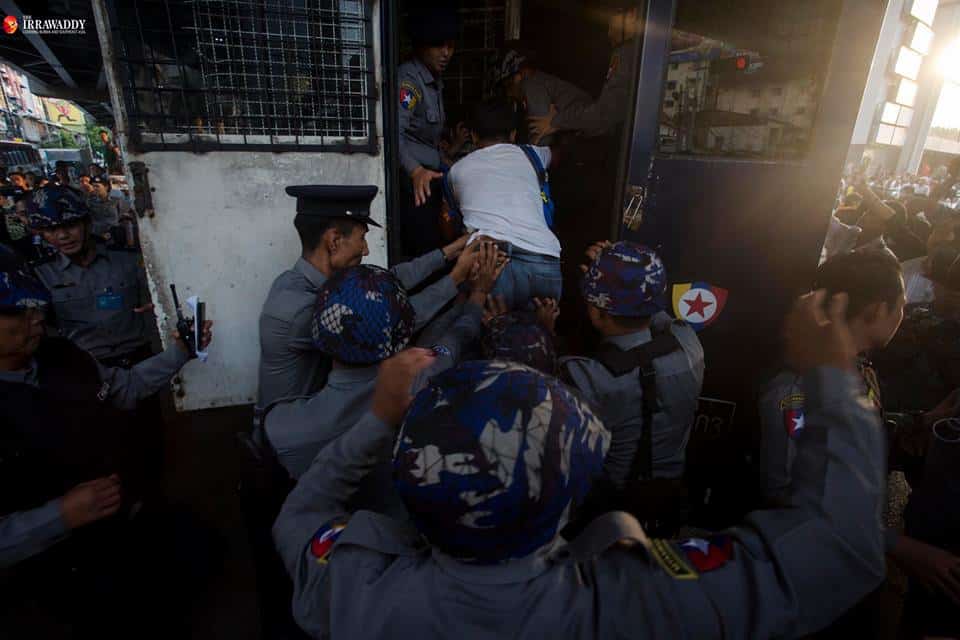 ألقت قوات مكافحة الشغب في ميانمار القبض على عدد من منظمي مظاهرة الاحتجاج اليوم السبت في مدينة يانغون للتنديد بالاشتباكات المسلحة بين الجيش وعناصر متمردة بولاية كاشين شمال البلاد.