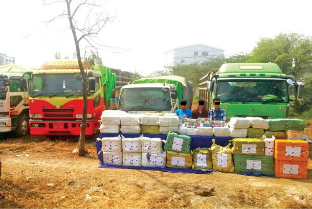 وتمت مصادرة المخدرات التي تبلغ قيمتها 30 مليار كيات (حوالي 24.5 مليون دولار أمريكي) عندما قام الفريق المحلي لمكافحة المخدرات بتفتيش حاوية للنقل داخل مجمع منازل في بلدة بيغيداغون بماندالاي .