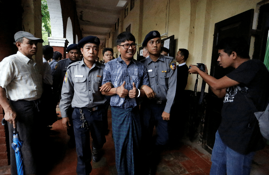 وعمل الصحفيان فى تغطية “رويترز” لأزمة الروهنغيا المسلمين الذين تشير تقديرات الأمم المتحدة إلى فرار نحو 655 ألفا منهم من حملة عسكرية شرسة في ولاية أراكان بغرب البلاد.