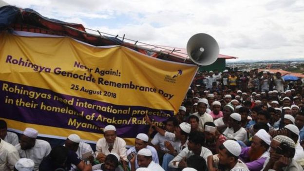 تظاهر عشرات الآلاف من لاجئي الروهنغيا لإحياء الذكرى الأولى للحملة التي شنتها حكومة ميانمار ضدهم وأدت لطردهم من مناطقهم.