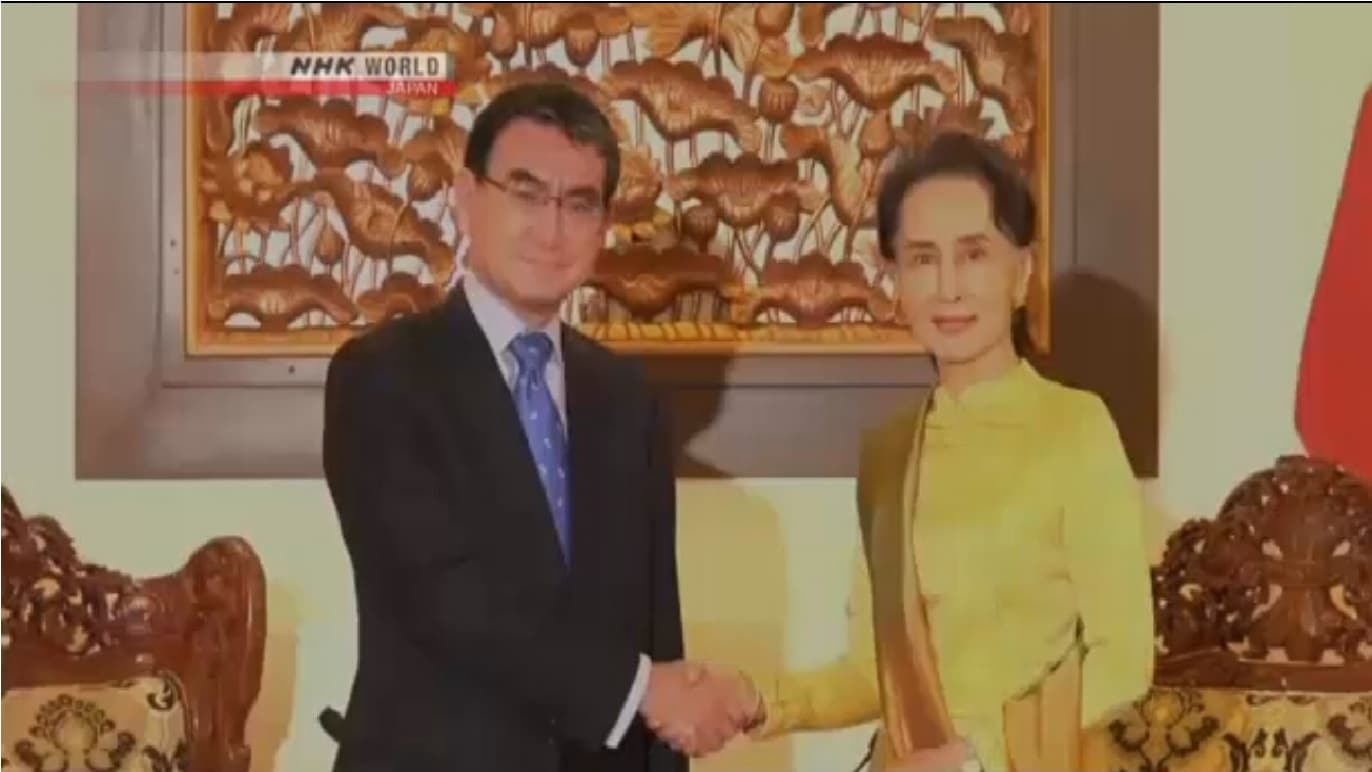 حث وزير الخارجية الياباني تارو كونو زعيمة ميانمار أونغ سان سو تشي على بذل المزيد لمساعدة الروهنغيا المسلمين على إعادة توطينهم في ديارهم.