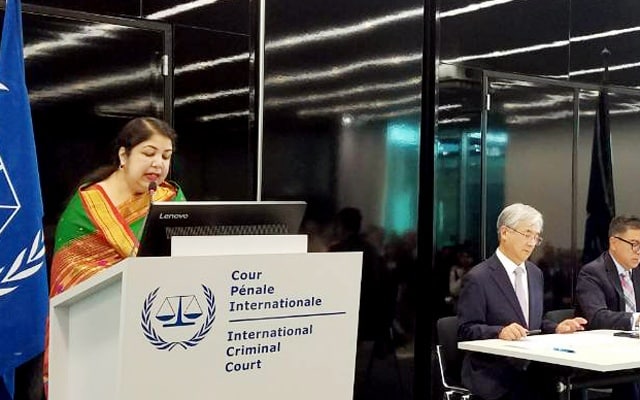 وفي ندوة نظمتها المحكمة الجنائية الدولية في هولندا للاحتفال بالذكرى العشرين لنظام روما الأساسي شاركت رئيسة مجلس الشيوخ البنغالي شيرين شارمين شودري وقالت في كلمتها التي ألقتها إن ميانمار دمرت شعب الروهنغيا بتشريدهم وقتلهم .