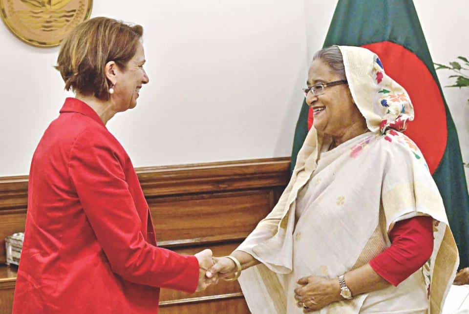 “ناقشت المبعوثة الخاصة في اجتماعاتها محنة اللاجئين الروهنغيا وأعربت عن تقديرها لحكومة وشعب بنغلادش الذين يساعدون من يلتمسون اللجوء من العنف. وقالت إن الأزمة المستمرة تتطلب حلا سياسيا يعالج القضايا الأساسية.”