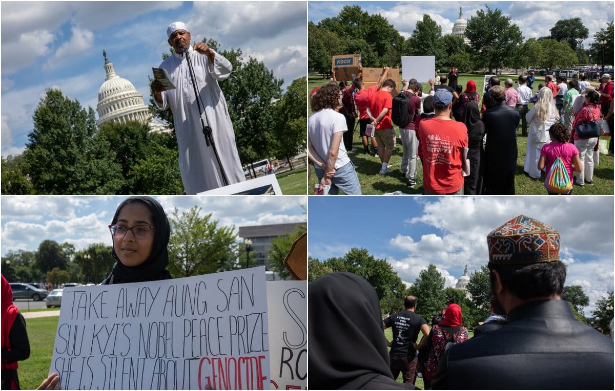 وبحسب مراسل الأناضول نظم المظاهرة ما يقرب من 100 أركاني اجتمعوا أمام مقر الكونغرس بواشنطن، للتنديد بالمجازر التي ترتكب بحق مسلمي الروهنغيا ببلادهم، داعين المجتمع الدولي لإيلاء القضية أهمية أكبر.