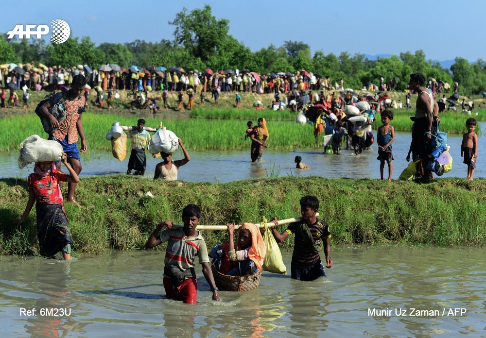 العمليات العسكرية الممنهجة التي نفذها جيش ميانمار أدت إلى عمليات نزوح جماعية بأعداد هائلة بلغت أكثر من 700 ألف روهنغي تجاه الدولة المجاورة بنغلاديش؛ حيث تتفاقم يوما بعد يوم المشكلة الإنسانية التي تشهدها مخيمات اللاجئين الروهنغيا في هذه الدولة الفقيرة العاجزة عن احتوائهم واستيعابهم بمواردها الاقتصادية الضئيلة. وقد بلغ مجموع أعداد اللاجئين حاليا في مخيمات اللجوء في بنغلاديش وحدها أكثر من مليون ومئتي ألف لاجئ في ظل ظروف وأوضاع إنسانية بائسة أقل ما يمكن وصفها به أنها ظروف مأساوية وأوضاع كارثية.