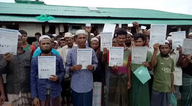 وفي مقطع فيديو حصلت عليه وكالة أنباء أراكان من نشطاء روهنغيين ظهر عشرات من اللاجئين الروهنغيا وهم يرفعون أوراقا يقولون إنهم تسلموها من المفوضية لكنها لا تحتوي على مصطلح اللاجئين أو الروهنغيا وهو سبب رفضهم لها .